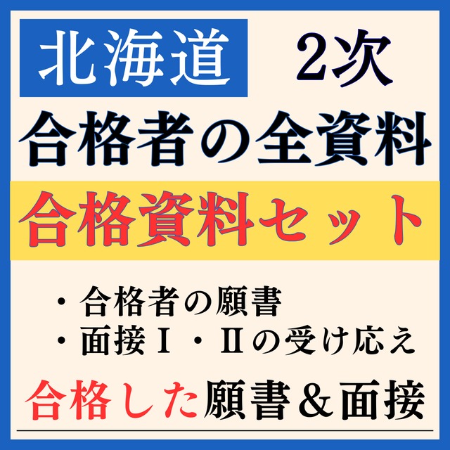 北海道の資料一覧は以下より。 https://kyosaitosho.official.ec/categories/6006042 ◆◆概要◆◆ 北海道教採に合格された方の面接内容をまとめた資料セットです。 ・合格者の面接内容(面接Ⅰ) ・合格者の面接内容(面接Ⅱ) のセットです。 面接官向けの内部資料や合格者の願書もあわせたお得なセットはこちら。 https://kyosaitosho.official.ec/items/126124410 ◆◆内容◆◆ ※製品版では見本画像の黄色い加工はありません。 ●合格者の面接内容(面接Ⅰ)(全7ページ) ・合格者の面接受け答え ・試験会場の様子や係員の説明内容 など ●合格者の面接内容(面接Ⅱ)(全9ページ) ・合格者の面接受け答え ・試験会場の様子や係員の説明内容 など ◆◆ご購入の注意点◆◆ クレジット決済でのご購入となります。 決済後、ダウンロードできます。 クレジット決済ができない方は以下までメールをください。 別のご購入方法(銀行振込・Paypay等)をお知らせします。 [email protected] 入金が確認でき次第、商品データをお送りします。