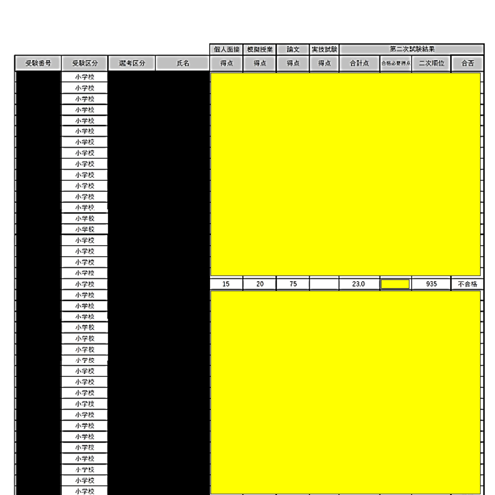 ※資料は一部(受験者氏名・番号・選考区分)が黒塗りとなっています。