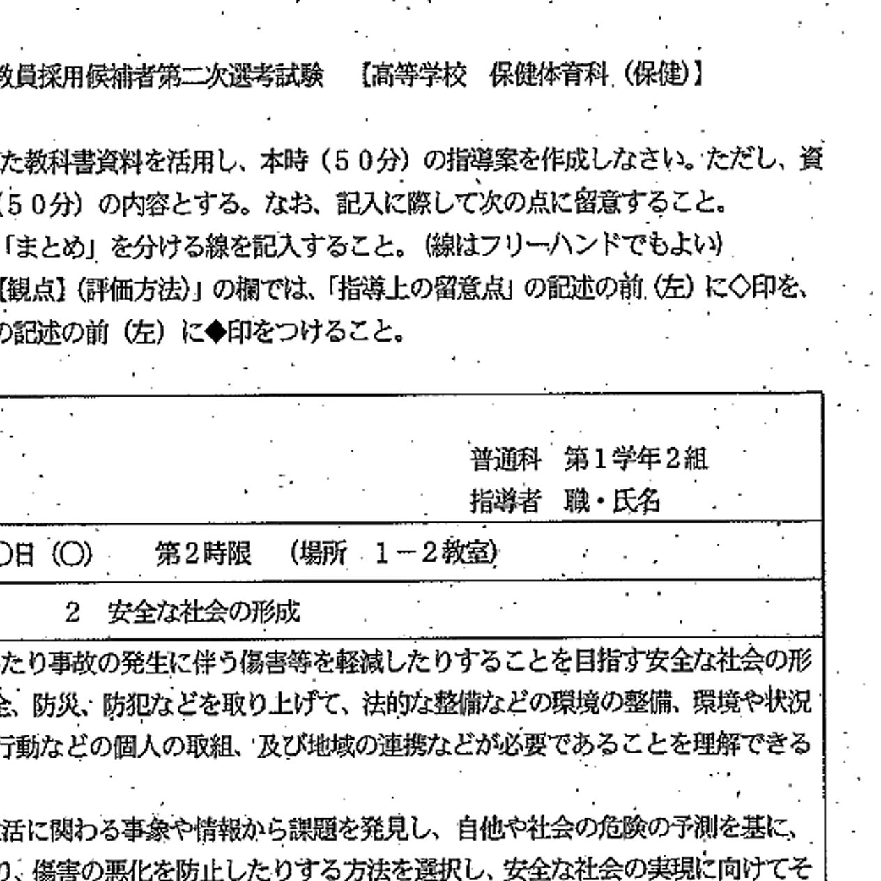 ●高校保健 模擬授業課題(全2ページ)