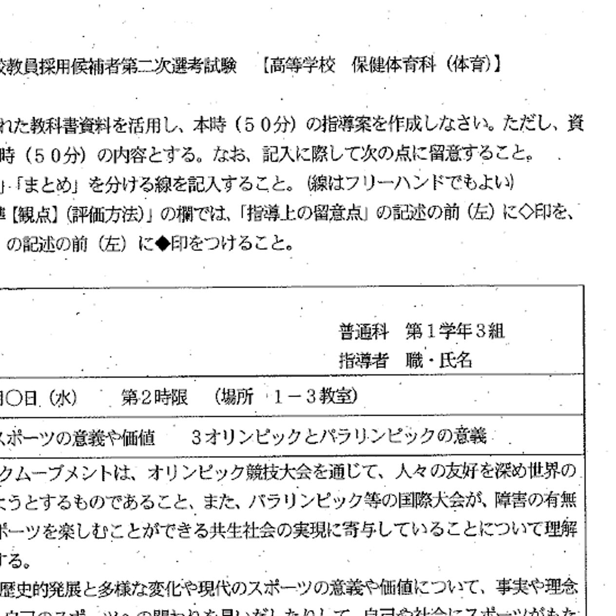 ●高校体育 模擬授業課題(全2ページ)